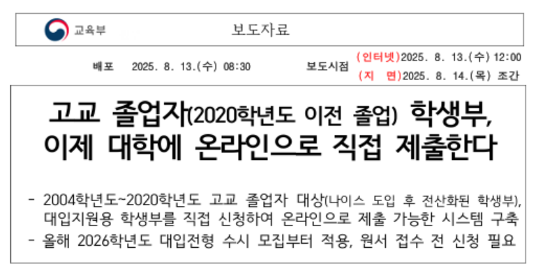 나이스 온라인 학생부 - 대입지원용 학교생활기록부란?