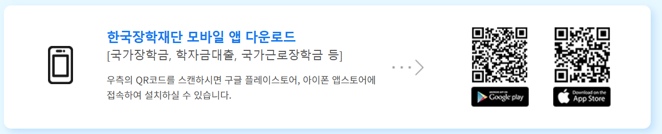 한국장학재단 홈페이지 또는 모바일 앱(한국장학재단) 접속