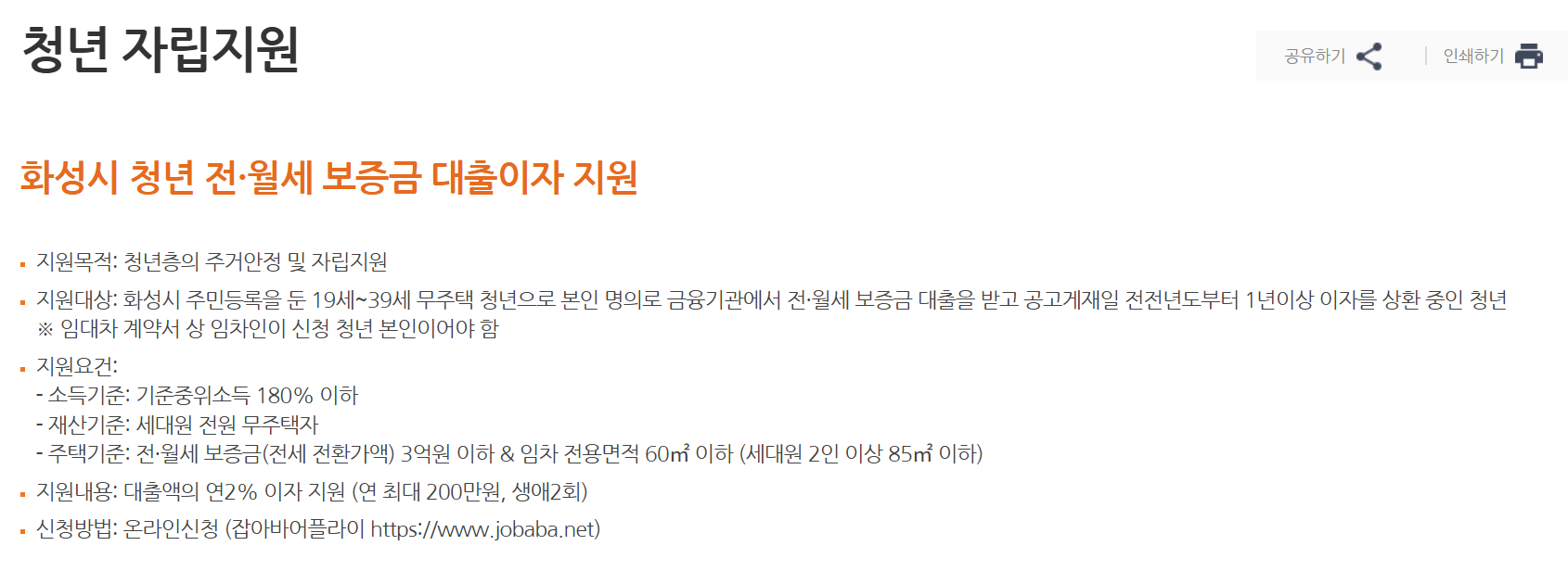 화성시에 주민등록을 두고 있는 무주택 청년 세대주