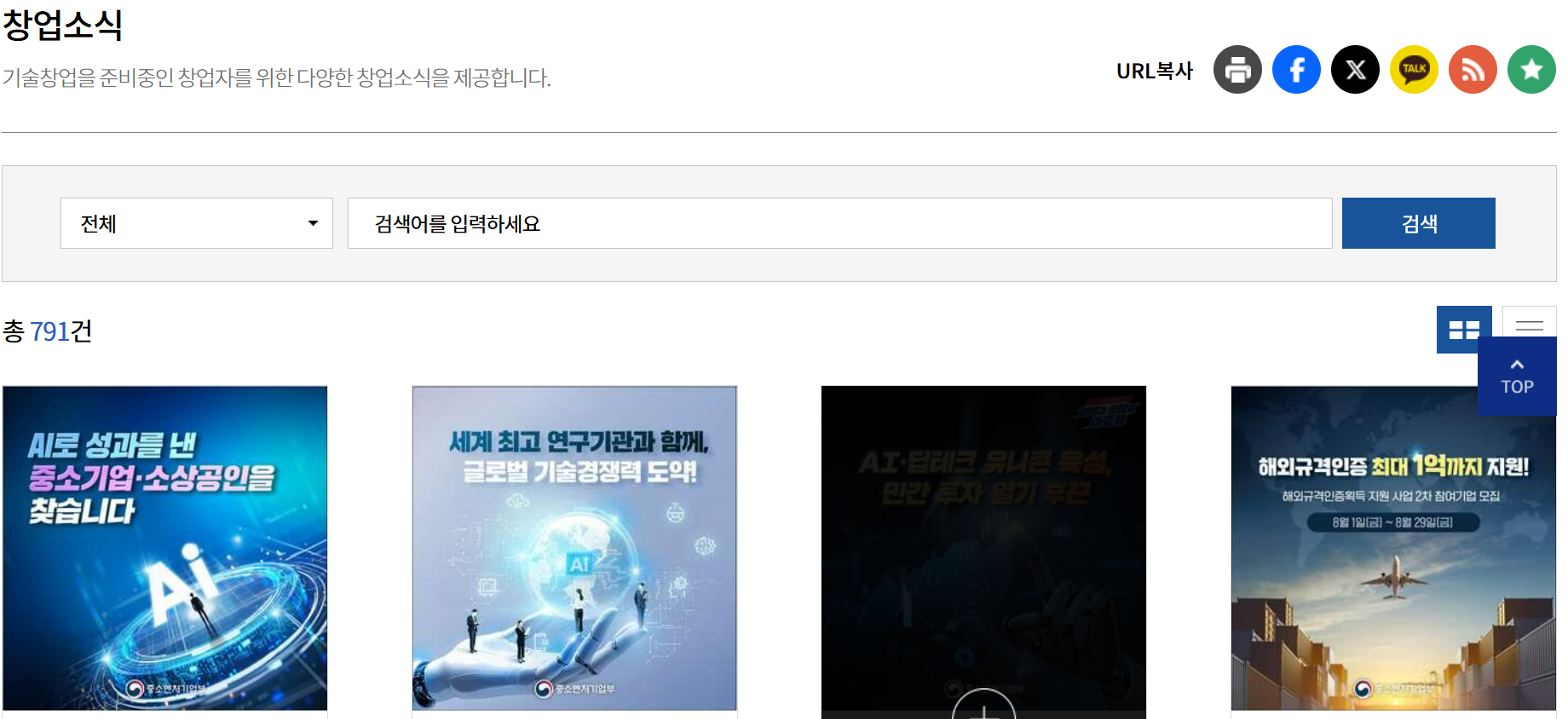 → 정부에서 진행하는 거의 모든 창업 지원 사업이 모여 있음