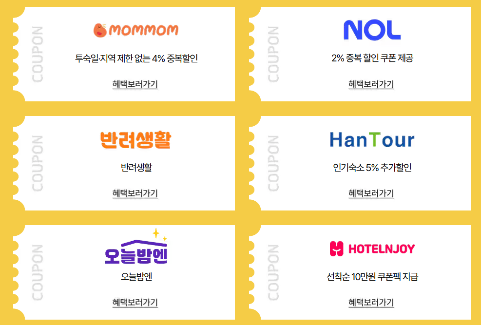 쿠폰은 ‘야놀자’, ‘여기어때’, ‘네이버예약’, ‘인터파크투어’, ‘쿠팡 트래블’ 등 다양한 플랫폼에서 사용 가능합니다.